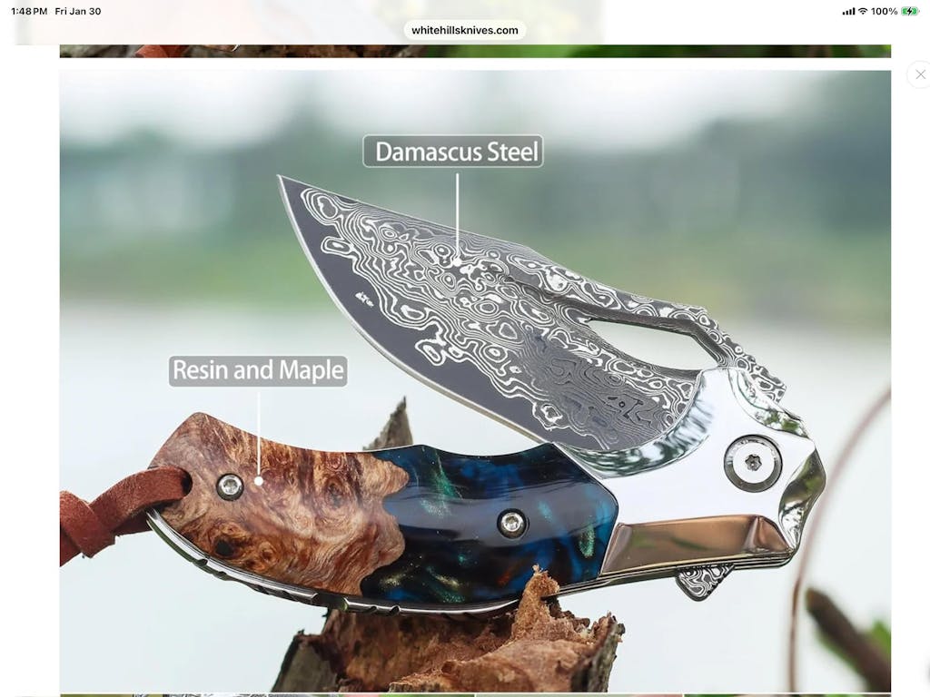 I just purchased 3 (2 for friends and 1 for myself) Damascus steel knives from White Hills and was very pleased with their service. I have received the knives and love them. I found White Hills very easy to deal with, anxious to please their customers and honest. I highly recommend.